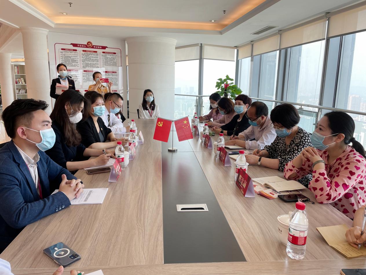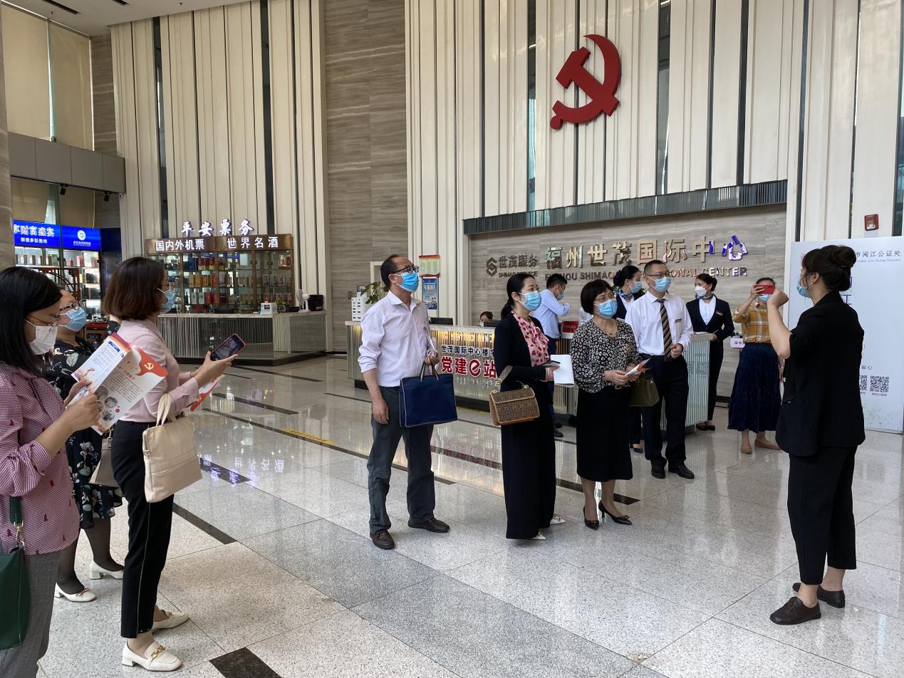 为发挥党建引领示范作用,4月28日下午,BB贝博艾弗森原官方网站章月萍院长、院党委副书记陈达颖、副书记吴思锋带队来到台江区世茂国际中心楼宇党委,开展政校企共建。BB贝博艾弗森原官方网站教师第三党支部一行等8人先后参观了一楼党建E站和48楼党群活动中心。茶亭街道党工委组织委员、世茂国际中心楼宇党委书记林晓芬介绍了楼宇党委“135”党建工作方法。