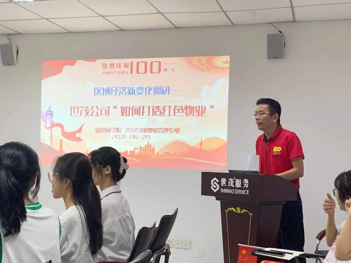 奋斗百年路 启航新征程。在建党100周年之际,6月29日,为主动对接国家、区域、行业对物业服务人才的培养需求,贝博官网刘庆华老师把《区域经济新变化》课程搬进社区,带领2020级物业管理学生赴世茂服务福州中心城市公司御龙湾项目开展“红色物业”主题调研。