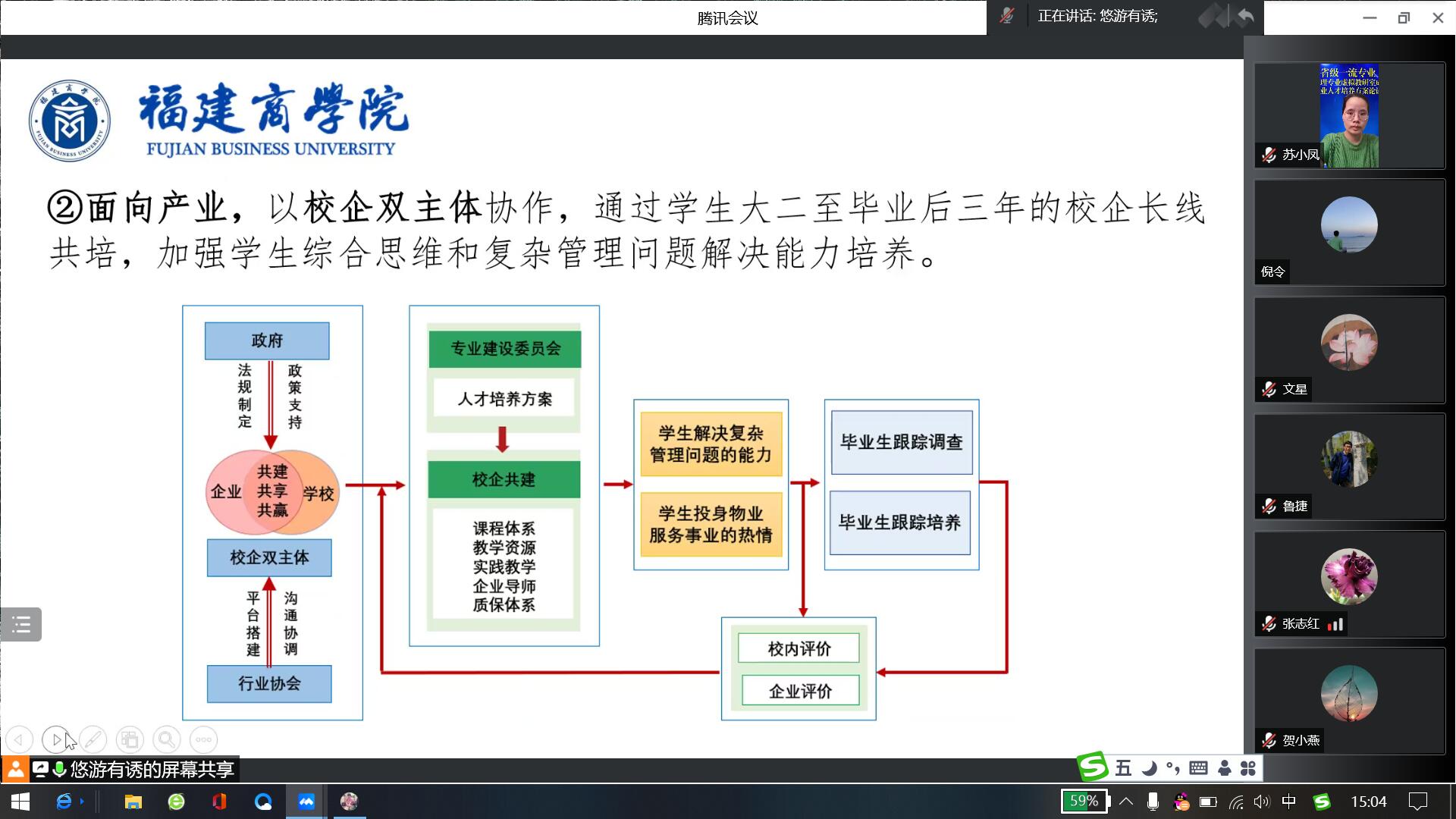 会议由李冰副教授主持,她首先介绍了福建商学院物业管理专业17年办学历程,和深化内涵、面向产业、服务学习的专业特色。