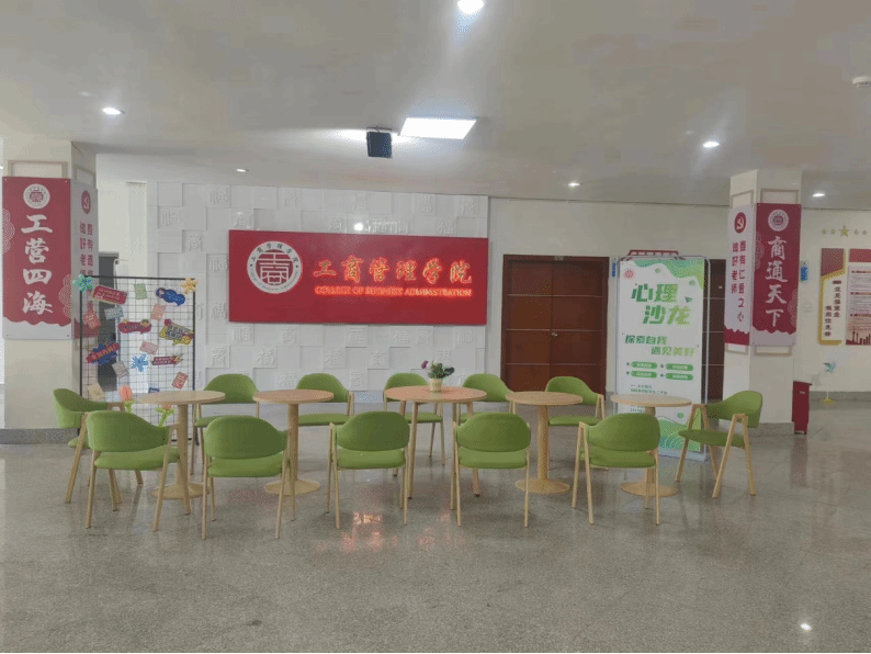 图为世茂天成物业服务集团捐赠给学院的桌椅