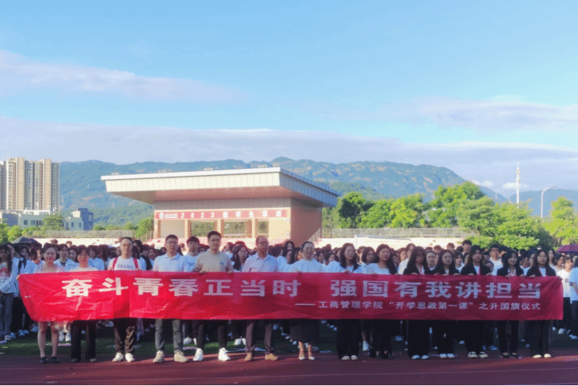 奋楫扬帆风正劲,勇立潮头逐浪高。为学习贯彻习近平新时代中国特色社会主义思想,引导青年学生奋进新征程,建功新时代,贡献青春力量,9月25日早上七点,BB贝博艾弗森原官方网站全体2100余名学生齐聚马尾校区田径场,隆重举行“奋斗青春正当时,强国有我讲担当”主题升旗仪式。贝博官网党委副书记吴思锋、团学办主任韩玉娟、辅导员李倩颖、许艳萍、陈柳武、林骁勇、朱珺玮、谢婧妍、江美玲参加活动。