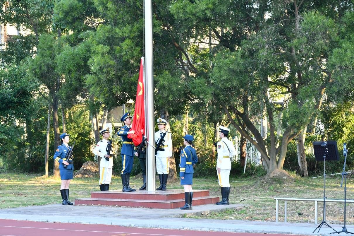 在全体师生的注目礼下,升旗手迈着矫健的步伐走向升旗台,伴随着庄严的国歌声,国旗冉冉升起,随风轻扬。全场师生深怀对祖国无限的热爱与崇高的敬意,目光坚定,向国旗行注目礼。