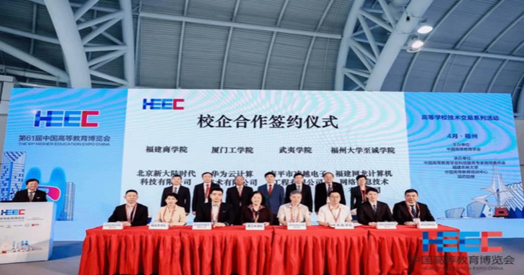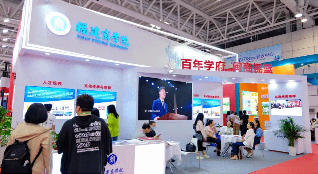本届高博会主题活动主要由“展览展示”和“高质量学术交流活动”两大板块构成,设置两岸融合专区,举办“海峡两岸高等教育融合发展”学术活动、“台青之友”沙龙活动等,围绕教育、人才、文化等因素,强化资源统筹、项目整合,积极展示两岸融合发展成果。福建商学院应邀作为参展单位之一,在高等教育改革发展成果展区独立设置特色展位,并与新大陆时代科技携手共建数字商务产业学院,旨在推动教育与产业的深度融合。