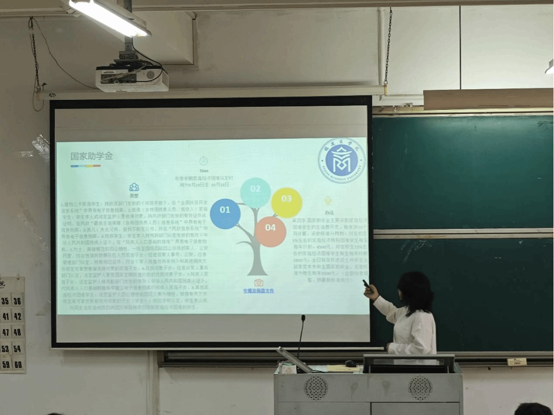 为深入学习宣传贯彻党的二十大精神,进一步做好学生资助政策宣传工作,关怀家庭经济困难的大学生。4月16日,贝博官网在诚信楼T2举办了“青春筑梦新时代,资助政策伴我行”资助宣传讲座。辅导员江美玲及97名学生参加此次资助宣传讲座。