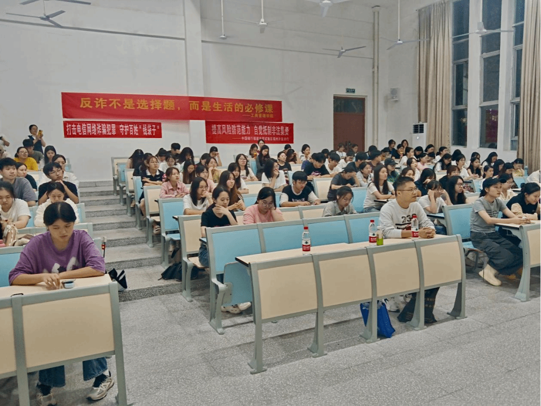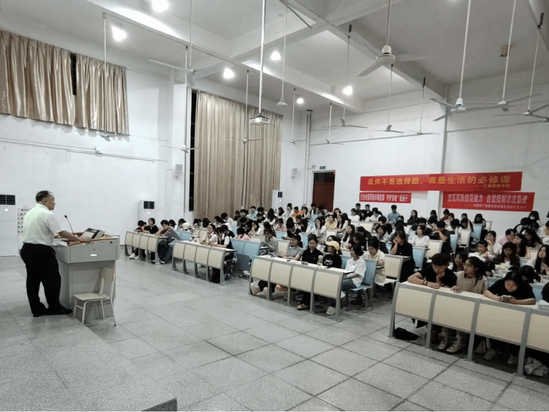 讲座有幸邀请到了中国银行长安支行行长陈斌、客户经理徐洐丽、姚清。姚经理作为主讲嘉宾,首先向同学们说明了防诈教育的重要性,在当前复杂多变的社会环境中,提高警惕、学会识别诈骗手段是每个人必备的技能。接下来,姚经理分别就电信诈骗和赌博诈骗进行了介绍,详细讲解了诈骗的基本类型、危害,并通过一些身边诈骗案例来警示同学们,这些案例涉及不同行业、不同年龄段的人群,揭示了诈骗分子的惯用伎俩,让大家深刻感受到了诈骗犯罪的普遍性和危害性,同时还传授了有效的防骗小贴示(六个一律,八个凡是),科普了关于“帮助信息网络犯罪活动罪”的法律知识。
