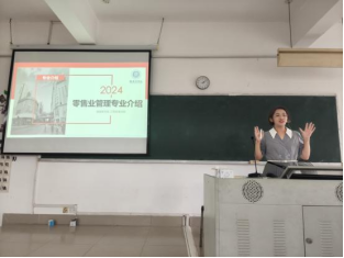 在专业介绍环节,谢老师首先介绍了到场的每位老师及授课课程。零售业专业师资力量雄厚,有博士后1名、博士5名、教授1名、副教授5名,硕士以上学历占比100%,我校零售业管理专业是我校唯一一个A+专业,全国排名第二。然后,谢老师从学生最关心的两个问题切入,即零售业管理专业学什么?未来的从业方向在哪里?谢老师认真分析了零售业管理专业的现状。目前,省内零售行业对零售业高级人才的需求缺口也极大。然后,谢老师还介绍了四年专业课程设置、毕业要求等详细内容。最后,谢老师还认真分析了大学和中学学习的七大不同,希望同学们能够尽快适应大学学习和生活。叮嘱学生们做好学习和生活规划,在大学期间不断充实自己、提高认知和职业素养。