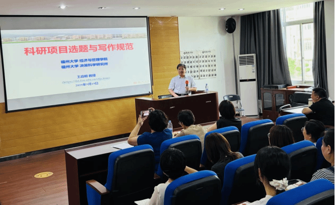 2025年9月19日下午,BB贝博艾弗森原官方网站邀请福州大学经济与管理学院王应明教授作题为《科研项目选题与写作规划》学术讲座。讲座由严谨院长主持,学院及校内50余名科研骨干、青年教师参会交流。