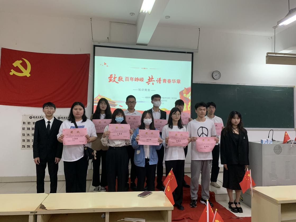 本次知识竞赛内容围绕党史、党章党规、“七一”重要讲话、党的十九届六中全会精神等进行题目设置,答题形式多样,理论性与趣味性相结合。经过激烈的角逐,以下同学脱颖而出,获得此次知识竞赛的奖项。其中,一等奖:21级市场营销2班王光俊;二等奖:20级物流管理1班武崇、20级物流管理2班夏盛晖;三等奖:20级人力资源管理2班陈靖静、21级人力资源管理班叶东垅、21级人力资源管理班林芸卉;优秀奖:20级物流管理1班李榕、21级人力资源管理班彭丽婷、21级人力资源管理班叶艳、21级物流管理1班高文杰。