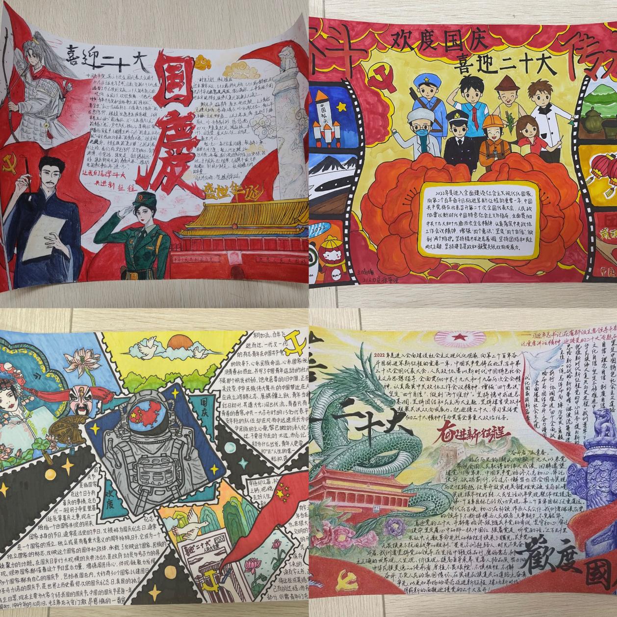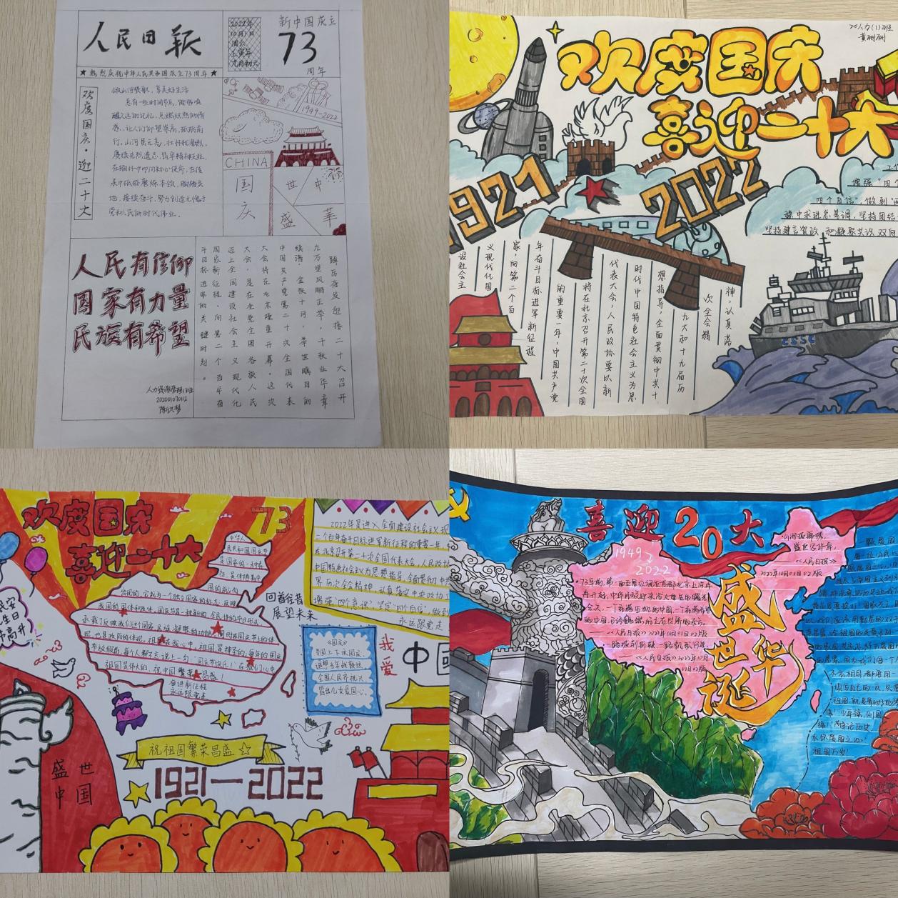 本次手抄报比赛要求同学们紧扣“喜迎二十大”这一主题,立意新颖,内容积极向上。绘制完后通过在读书社社群公开投票的方式,评选出一二三等奖,获奖的同学均有奖状以及精美小礼品一份。同学们积极参与了本次比赛,以各色各样的绘画形式展现出永远跟党走的信心和决心,表达对祖国的美好祝福。一撇一捺的认真,独具匠心的“我心向党”,是同学们交出的青春答卷。