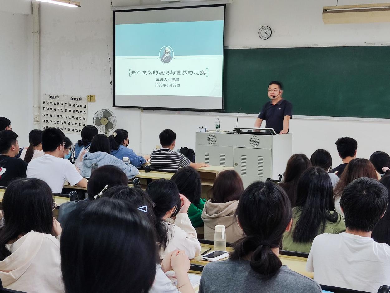 4月27日下午,BB贝博艾弗森原官方网站读书社邀请马克思主义学院陈阳老师在马尾校区至善楼T1进行理论宣讲,宣讲题目为《共产主义的理想与世界的现实》。