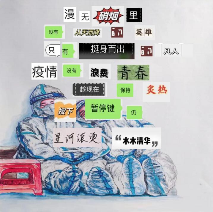 党的二十大报告中提到:“全面建设社会主义现代化国家,必须坚持中国特色社会主义文化发展道路,增强文化自信。”11月11日至11月19日,BB贝博艾弗森原官方网站读书社开展“等闲识得春风面,万紫千红总是春”拼贴诗作品征集活动,旨在让同学们感受疫情之下爱与真情的流露,展现文学的魅力,调动同学们对艺术的热情,为烦闷的隔离生活增添光彩。