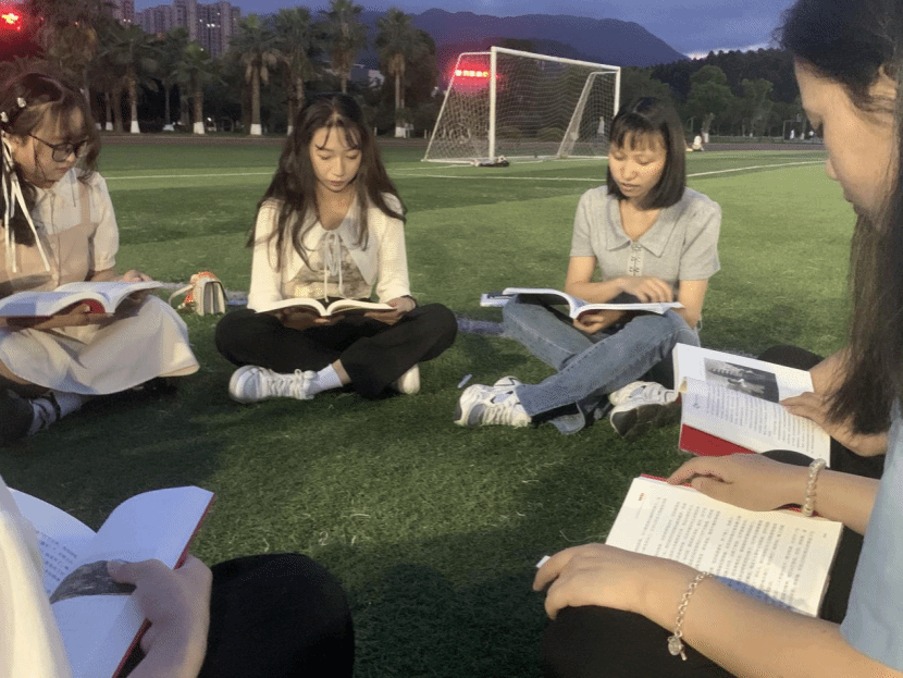 最是书香能致远,腹有诗书气自华。阅读是一个国家、一个民族精神成长、文明传承的重要途径。为形成爱读书、读好书、善读书的浓厚氛围,引领广大同学们争做具有伟大梦想、坚定信念和使命担当的时代新人,5月27日傍晚,BB贝博艾弗森原官方网站读书社于学校操场举办“读经典,闻书香,润人生”读书分享会。读书社全体干部干事参与本次活动。