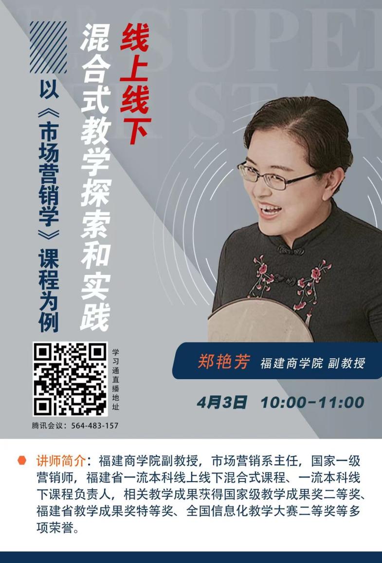 为做好疫情期间线上教学活动,2022年4月3日,我校BB贝博艾弗森原官方网站郑艳芳副教授在我省线上线下融合式教学经验会上分享了题为“线上线下混合式教学探索与实践-以市场营销学为例”的经验。该经验分享会由福建省教育厅高教处指导,福课联盟与超星集团主办。
