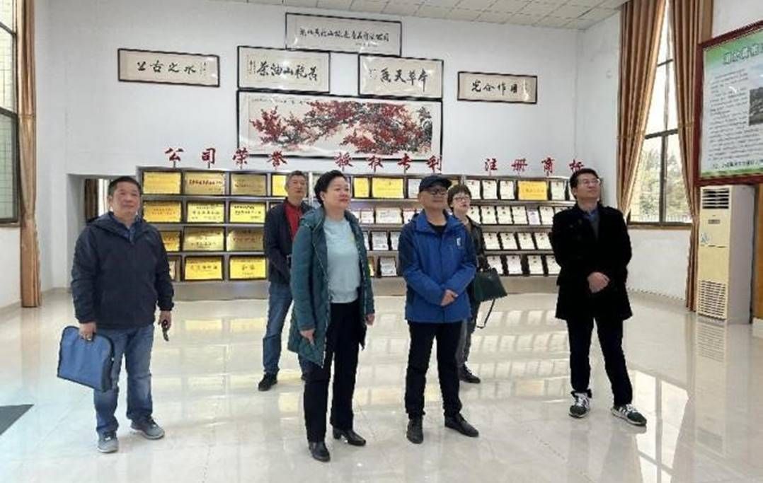 11月29日调研团队来到湖北省咸宁市通城县湖北黄袍山绿色产品有限公司,公司负责人介绍了企业概况,并带领调研团队参观了生产线、油茶及其衍生产品展示馆。为深入了解当地油茶产业所面临的问题,寻找优势与亮点,课题组与当地相关领导及种植大户开展座谈会,种植户提出劳动力缺乏、油茶品种不适合、销售渠道缺乏等困难,希望政府能增加对油茶林管护的补贴,加大对灌溉等基础设施的补助,课题组能够提供品种和销售渠道方面的技术支持。