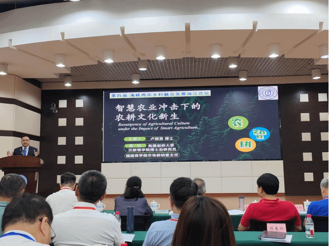 2025年9月20日,贝博官网台籍教师、市场营销系副教授卢翊淮博士,受闽江学院乡村振兴研究院邀请前往参加第四届海峡两岸乡村融合发展闽江论坛,并做了《智慧农业冲击下的农耕文化新生》主讲发言。本届论坛由闽江学院主办,闽江学院乡村振兴研究院、厦门大学台湾研究院承办,中评智库基金会、闽江学院海峡两岸融合发展研究院、经济与管理学院协办。