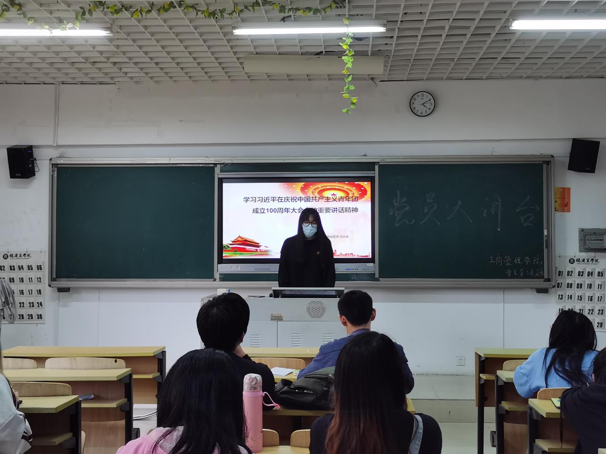 5月13日下午,BB贝博艾弗森原官方网站学生第二党支部在诚信楼201教室组织开展学生党员大讲台,学生党员徐佳彬和蔡嘉程同学跟入党积极分子分享了自己学习“习近平总书记在庆祝中国共产主义青年团成立100周年大会上重要讲话”的心得体会,并为同学们介绍了习近平总书记在庆祝大会上的重要讲话相关知识。