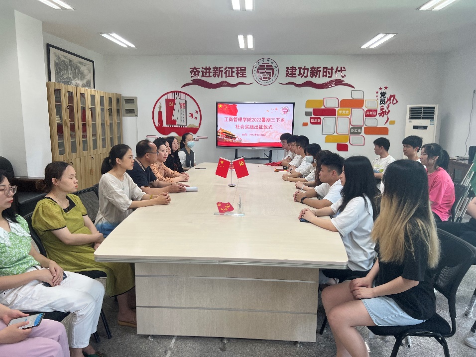 6月24日下午,BB贝博艾弗森原官方网站在党员活动室举行2022暑期“三下乡”社会实践出征仪式。学院在校的班子领导、全体辅导员和各团队队员代表参加了活动。