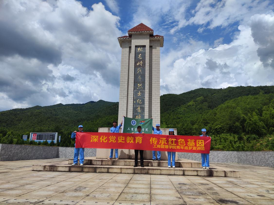 青年追梦宣讲团团队成员共7人,其中指导老师2人,团队由BB贝博艾弗森原官方网站党委委员、副院长严谨教授,BB贝博艾弗森原官方网站党委委员郝加祥老师带领,本次活动由林雨珊同学主持,带领团队围绕松毛岭保卫战和中复村部分遗址景点进行理论讲解,林雨珊同学于松毛岭战斗烈士纪念碑前,重点对纪念碑上杨成武将军的提字和34阶台阶进行理论宣讲;苏敏凤同学重点对温坊大捷的故事进行了理论宣讲;曾建烽同学于松毛岭的红九军团司令部暨红军长征出发地旧址——观寿公祠,重点对红军誓师、长征出发进行理论宣讲;廖雅庆同学重点对松毛岭保卫战的战前动员工作进行理论宣讲;樊鑫伟同学重点对白叶洋岭战场的故事进行理论宣讲,现场氛围浓厚,吸引了不少游客的关注与聆听。