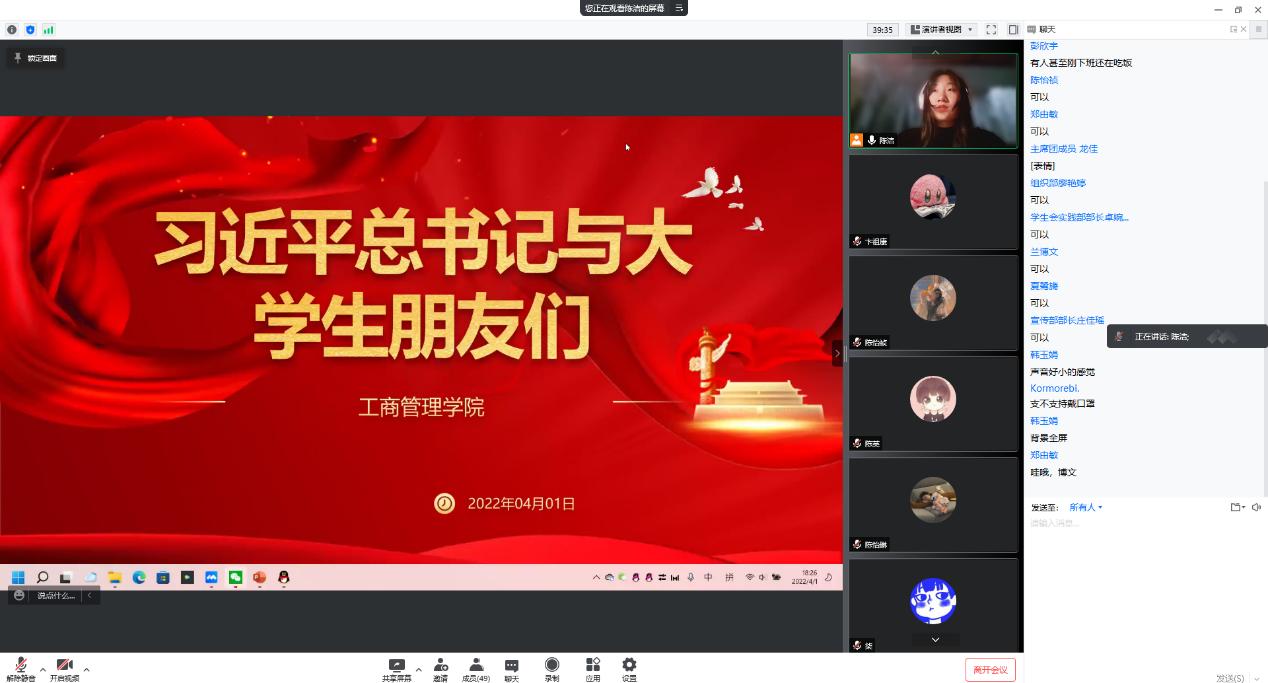 此次会议虽然在线上举办,但全体人员的热情并没因此消减,反而更好地分享出了自己的读书心得,让大家认识到《习近平与大学生朋友们》采访实录的内涵,了解了习近平总书记对大学生们的关心和期盼,激励了工管学子的好学之心。