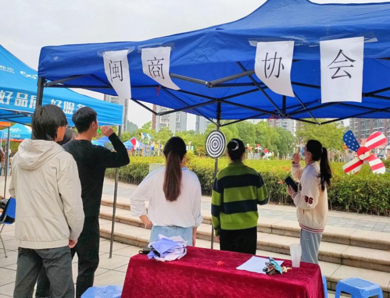 为了让广大新生能够更快地融入大学的校园生活,也为了提升校园的文化内涵,由校社团联合会与各大社团联合举办的一年一度文化巡礼节于2021年11月2日下午2:30至6:00在白鸽广场举办。在游园会的现场,BB贝博艾弗森原官方网站闽商协会准备了两个趣味十足的小游戏——“飞镖大战”与“水上乒乓球”。