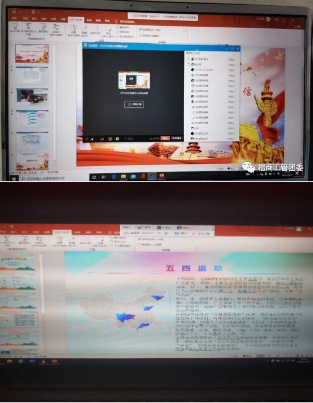 各班团支部开展“绽放战疫青春·坚定制度自信”网上主题团课。根据《共青团中央关于在五四期间组织开展“绽放战疫青春·坚定制度自信”主题宣传教育实践活动的通知》(中青明电〔2020〕14号)精神,要求各班团支书通过班级QQ群、微信群开展一次网上主题团课,要求团支部书记、班长、学生党员等要发挥核心作用,认真贯彻落实青年大学习,在第101个五四青年节到来之际,深入学习宣传贯彻习近平总书记关于疫情防控工作系列重要讲话和指示批示精神,认真学习习近平总书记给北大援鄂医疗队全体90后"党员的回信精神,激励和引领广大青少年进一步坚定制度自信,在党和人民最需要的地方贡献青春力量。用实际行动传承五四精神。