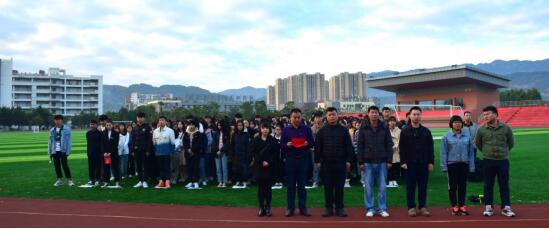 伴随着激昂的国歌,鲜艳的五星红旗在清晨阳光的映衬下冉冉升起。廖新平副书记发表国旗下的讲话,他指出祖国的繁荣昌盛,需要我们每一代中华儿女的接力奋斗,大学生是祖国的未来、民族的希望。我们应当让自己“忙起来,强起来,严起来,动起来”,提升综合素质,争做福商“新儒商”。第一,要“忙起来,珍惜美好时光”。紧跟世界潮流和时代变化,刻苦学习科学文化知识,多读书、深思考、善提问,激发学习潜能和学习兴趣,参加各种类型的学校活动和社会实践活动,提升自己各方面的能力和综合素质。第二,要“强起来,拥抱美好未来”。认真学习习近平新时代中国特色社会主义思想,积极参与“习近平新时代中国特色社会主义思想读书社”,提高学术研究能力与艺术鉴赏能力,真正成为有竞争实力的“福商”青年。第三,要“严起来,成为自律标兵”。在日常生活中要严格要求自己,自律学习,自觉实践,通过对自己的高要求,养成良好学习、生活习惯,提高自律行为能力,成为幸福快乐、淡定从容、内心强大,充满正能量的优秀大学生。第四,要“动起来,丰富大学生活”。课余时间“走出寝室、走下网络、走向操场”,积极参加体育锻炼,提高身体素质,磨练意志品质,陶冶情操,形成“班班有体育活动,人人有体育项目”的生动局面,展示大学生健康阳光、积极向上、轻松朝气的风貌。