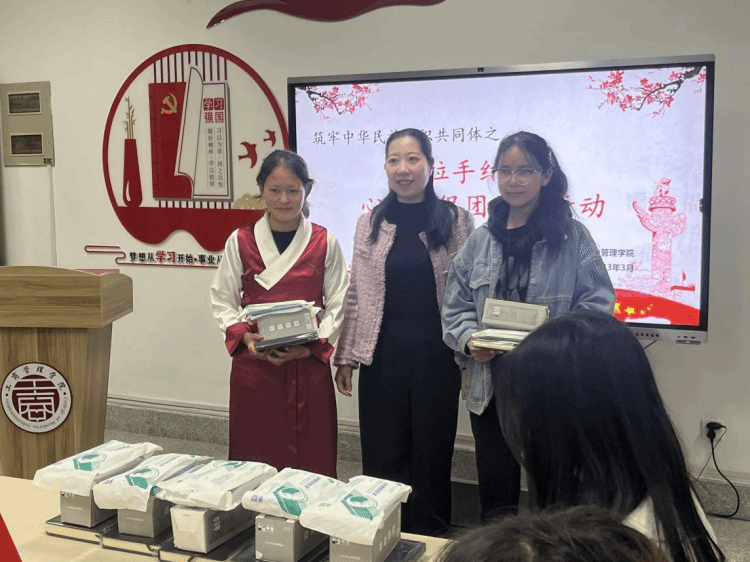 老师们还为新疆、西藏的同学们分发了笔记本子、口罩、水杯等学习生活用品。小小的心意让离家千里之外的学生们感受到学院给予的浓浓温情。