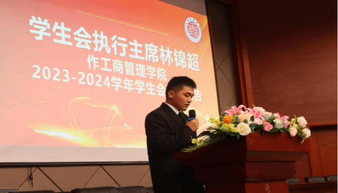 紧接着,学生会执行主席林锦超作BB贝博艾弗森原官方网站2023-2024学年学生会工作报告。报告全面回顾了过去一年学生会的工作亮点和成果,分析了存在的问题和不足,并提出了未来一年的工作目标和计划,抒发了对探索改革创新、书写青春篇章的美好期望。